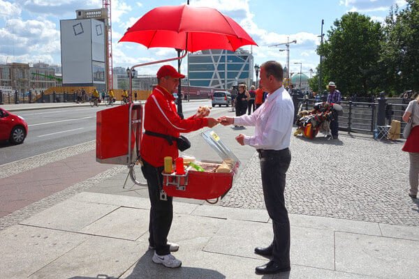 Ở Đức thì sao nhỉ? Chuyện này thì khó có thể xảy ra. Trên mọi ngỏ ngách đường phố thì không một tiếng rao của những người bán hàng rong, không một món ăn đường phố xuất hiện nhan nhản. Mà đổi lại đó là đường phố chỉ có người qua lại và xe cộ mà thôi.