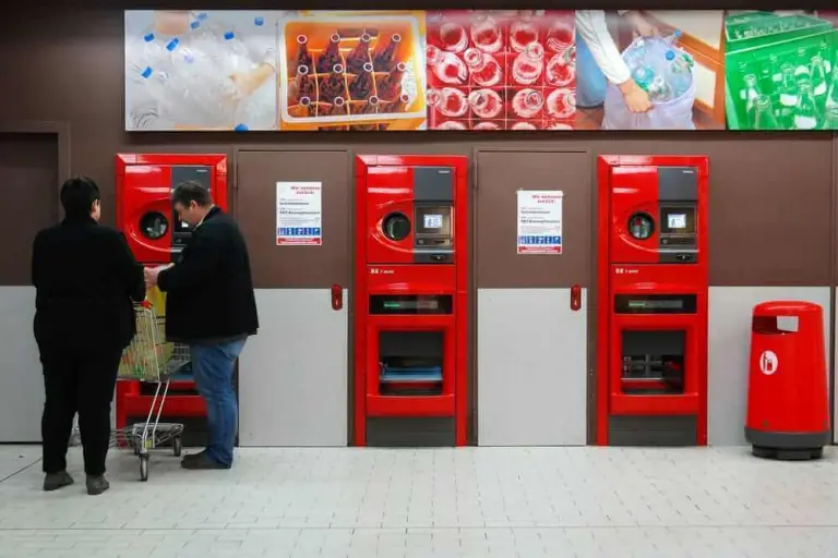 Bởi vì ở Đức khi bạn mua những chai hoặc lon nước thì giá của mỗi chai bạn sẽ phải cộng thêm 0,25 cent cho vỏ chai, cái đó được gọi là “Pfandgeld”, bạn sẽ phải trả thêm số tiền cho vỏ chai đó. Sau khi bạn uống hết nước trong chai bạn sẽ đem cái vỏ chai rỗng đến siêu thị và bỏ vào cái máy thu hồi vỏ chai gọi là “Plandflaschenautomat” thì máy sẽ nhả ra một cái phiếu ghi số tiền tương ứng với số lượng chai mà bạn đã đổi, sau đó bạn có thể sử dụng phiếu đó để mua các mặt hàng khác hoặc đổi lại tiền tại quầy thu ngân hoặc máy trả tiền tự động.