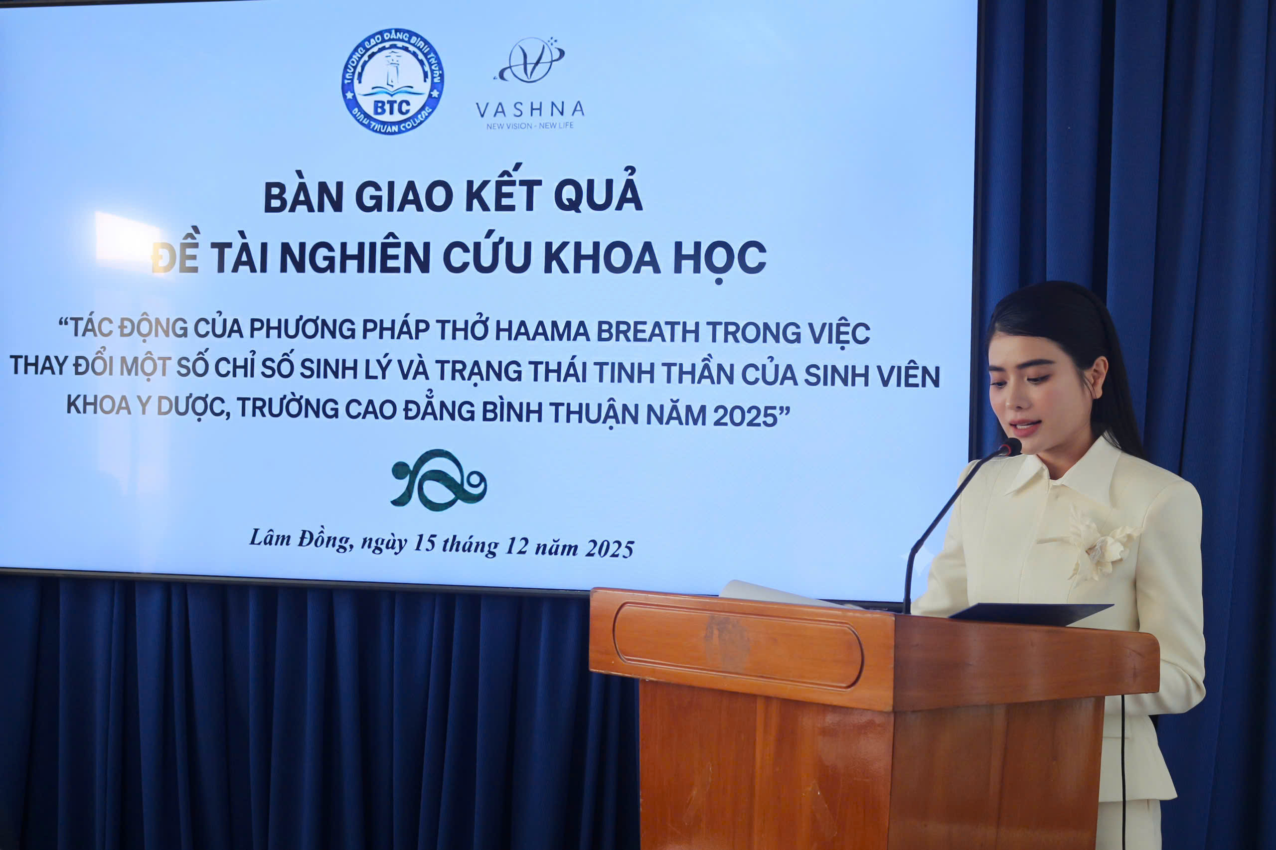 Chiều ngày 15/12/2025, tại Trường Cao đẳng Bình Thuận đã diễn ra lễ bàn giao kết quả đề tài nghiên cứu khoa học cấp Trường cho Công ty TNHH Vashna Group. Đây là thành quả sau 6 tháng tập trung triển khai nghiên cứu thực nghiệm và đánh giá tác động thực tế.
