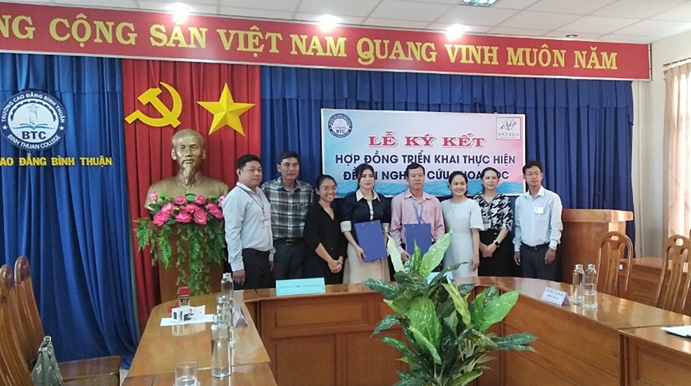 Ngày 13/6/2025, tại Phòng họp CS1, Trường Cao đẳng Bình Thuận đã diễn ra Lễ ký kết hợp tác giữa nhà trường với Công ty TNHH Vashna Group nhằm triển khai đề tài nghiên cứu khoa học "Tác động của phương pháp thở Haama Breath trong việc thay đổi một số chỉ số sinh lý và trạng thái tinh thần của sinh viên khoa Y - Dược, Trường Cao đẳng Bình Thuận".