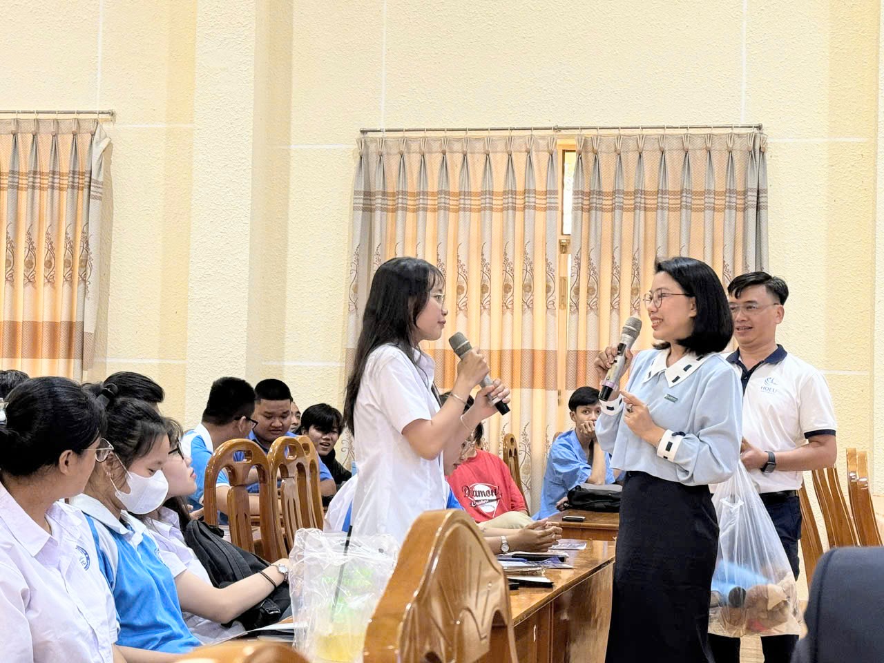 During the workshop, Ms. Tran Thi Ngoc Thien – HDEU’s PR Manager and Mr. Nguyen Tan Quoc – HDEU’s Admission Manager shared reality information about the program, learning path, study expenses, benefits, loan assistance policies…when students participate in this program.