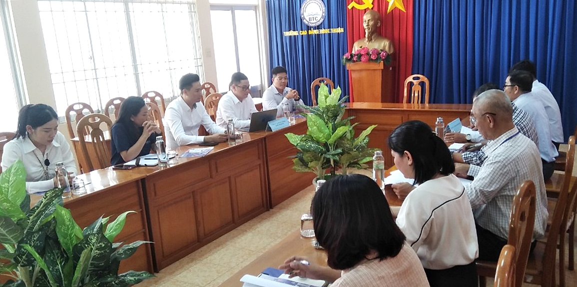 On the afternoon of October 24th, 2024, Edugo International Education Joint Stock Company (hereinafter referred to as the Edugo) specialized in the field of study-abroad consultation came to visit and work Binh Thuan College (BTC) at Campus 1 of the College. Welcoming the delegation were M.Sc. Nguyen Huu Ich_BTC’s Vice-Principal and representatives from Academic Affairs Dept., Scientific Research and International Collaboration Dept., Medical and Pharmaceutical Science Faculty, and Center of Foreign Language and Informatics.