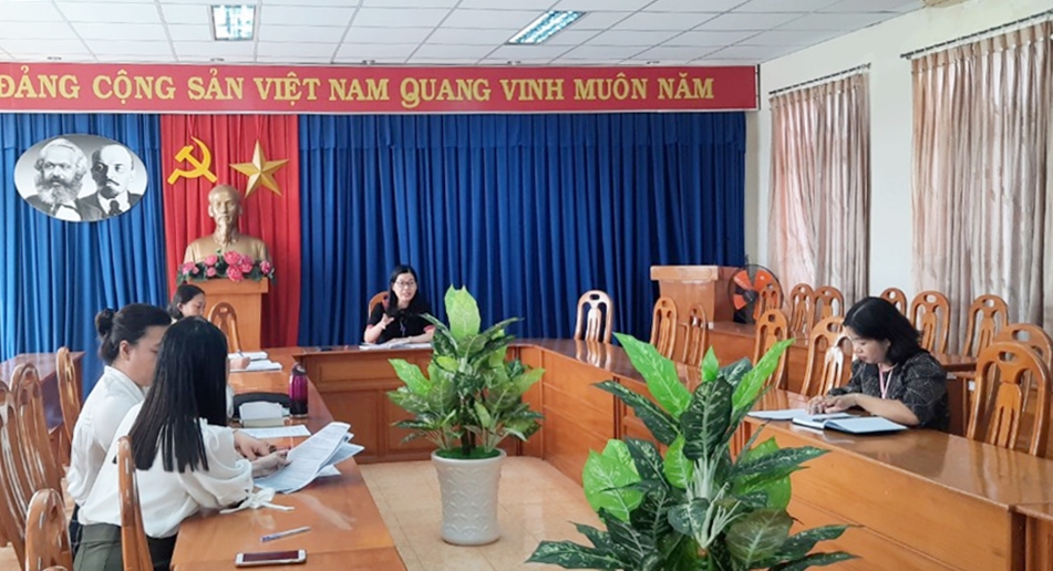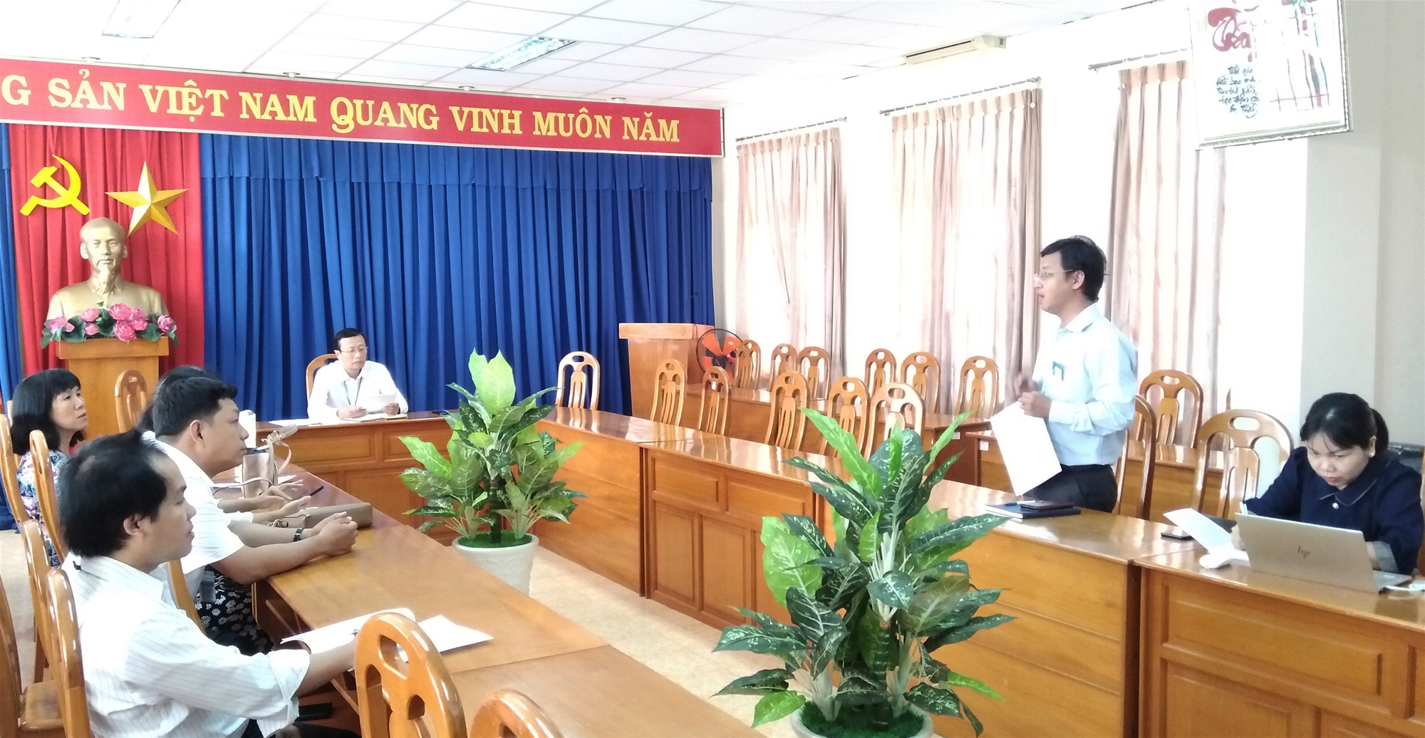Hình 3: Th.S Trần Thị Kim Chung_Phó Hiệu trưởng nhà trường trao đổi với Hội đồng về đề cương của nhóm nghiên cứu