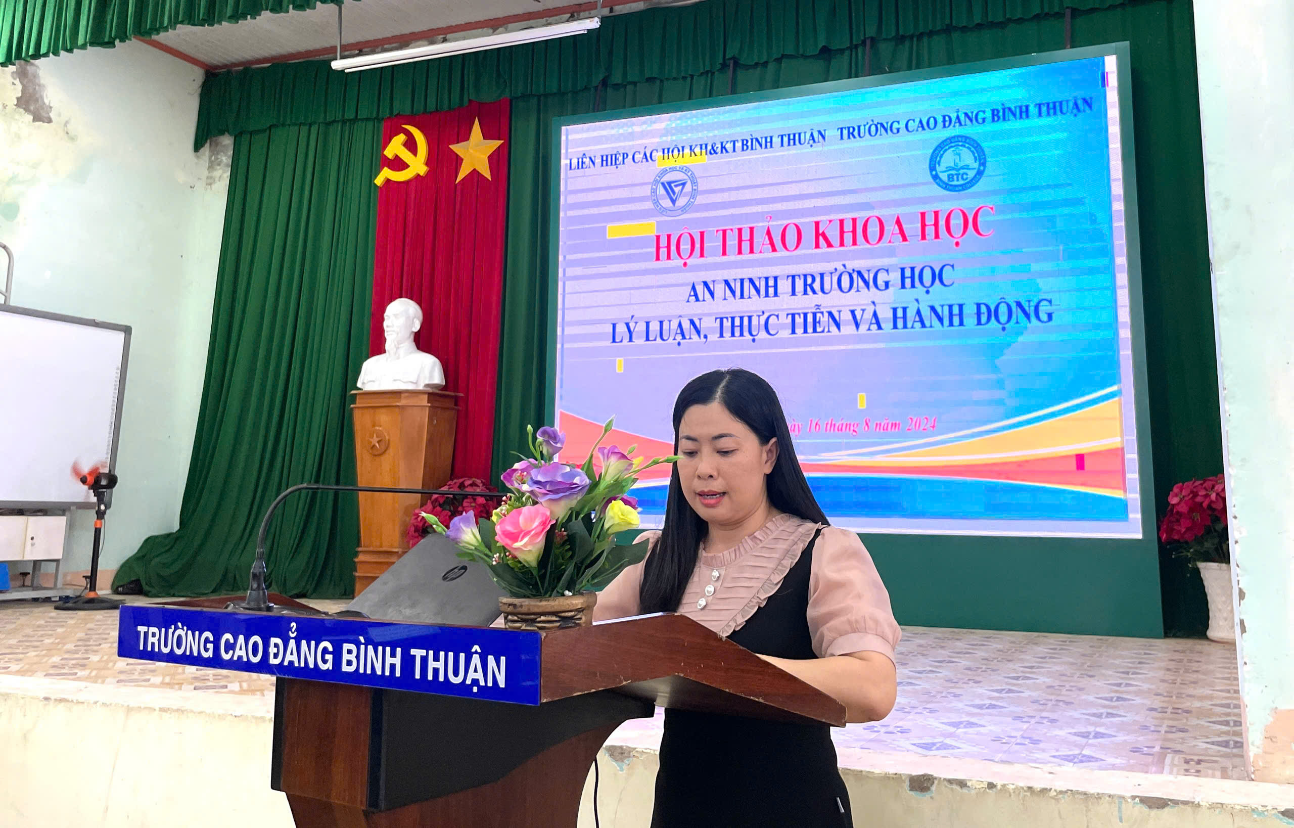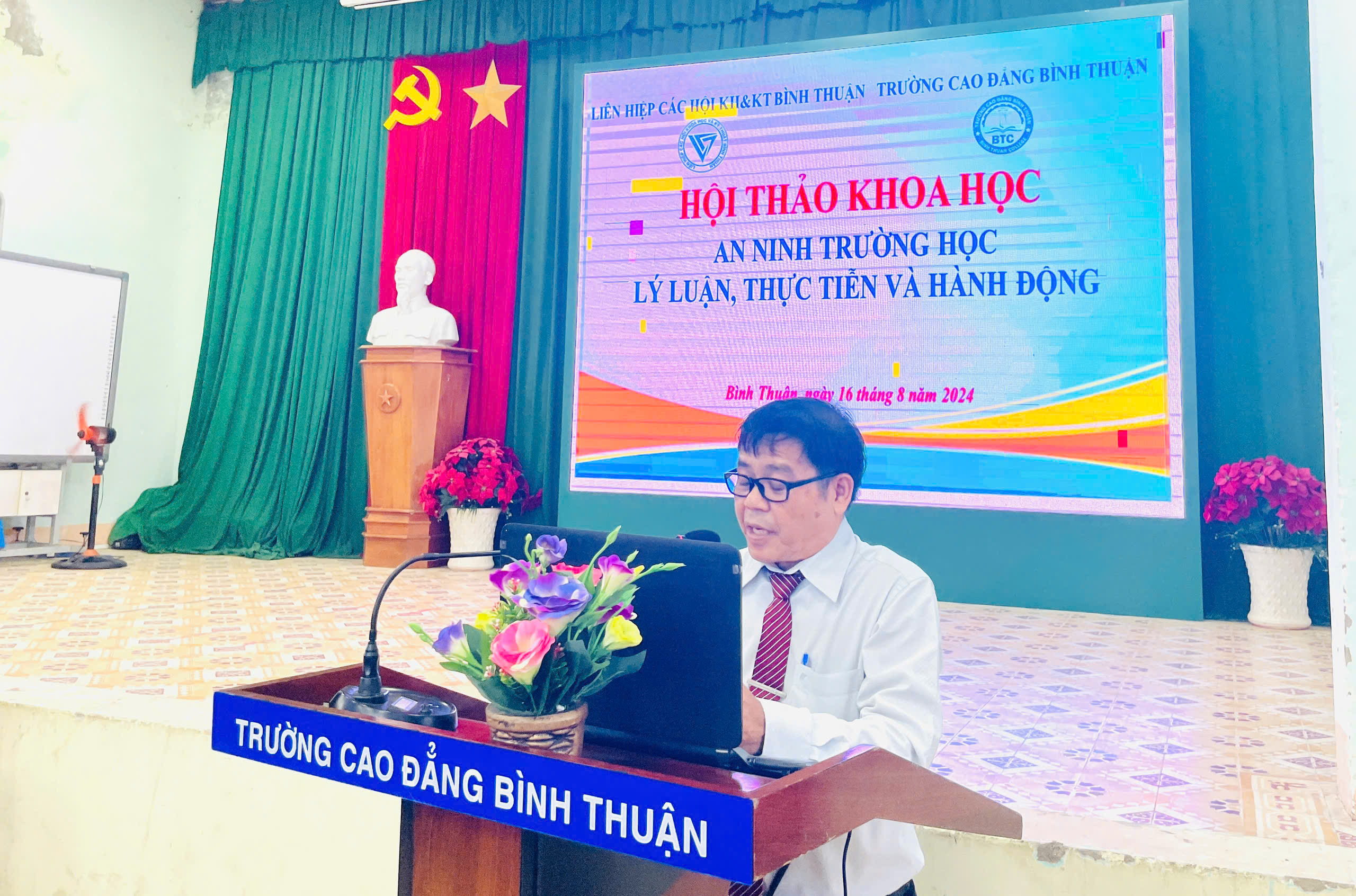 Hướng tới mục tiêu xây dựng trường học an toàn cũng như nâng cao nhận thức của đội ngũ viên chức và HSSV nhà trường về việc đảm bảo an ninh trât tự trong trường học, Trường Cao đẳng Bình Thuận đã phối hợp với Liên hiệp các Hội Khoa học và Kỹ thuật Bình Thuận tổ chức Hội thảo “An ninh trường học: Lý luận, thực tiễn và hành động” vào chiều ngày 16/8/2024 tại Hội trường Cơ sở 2.