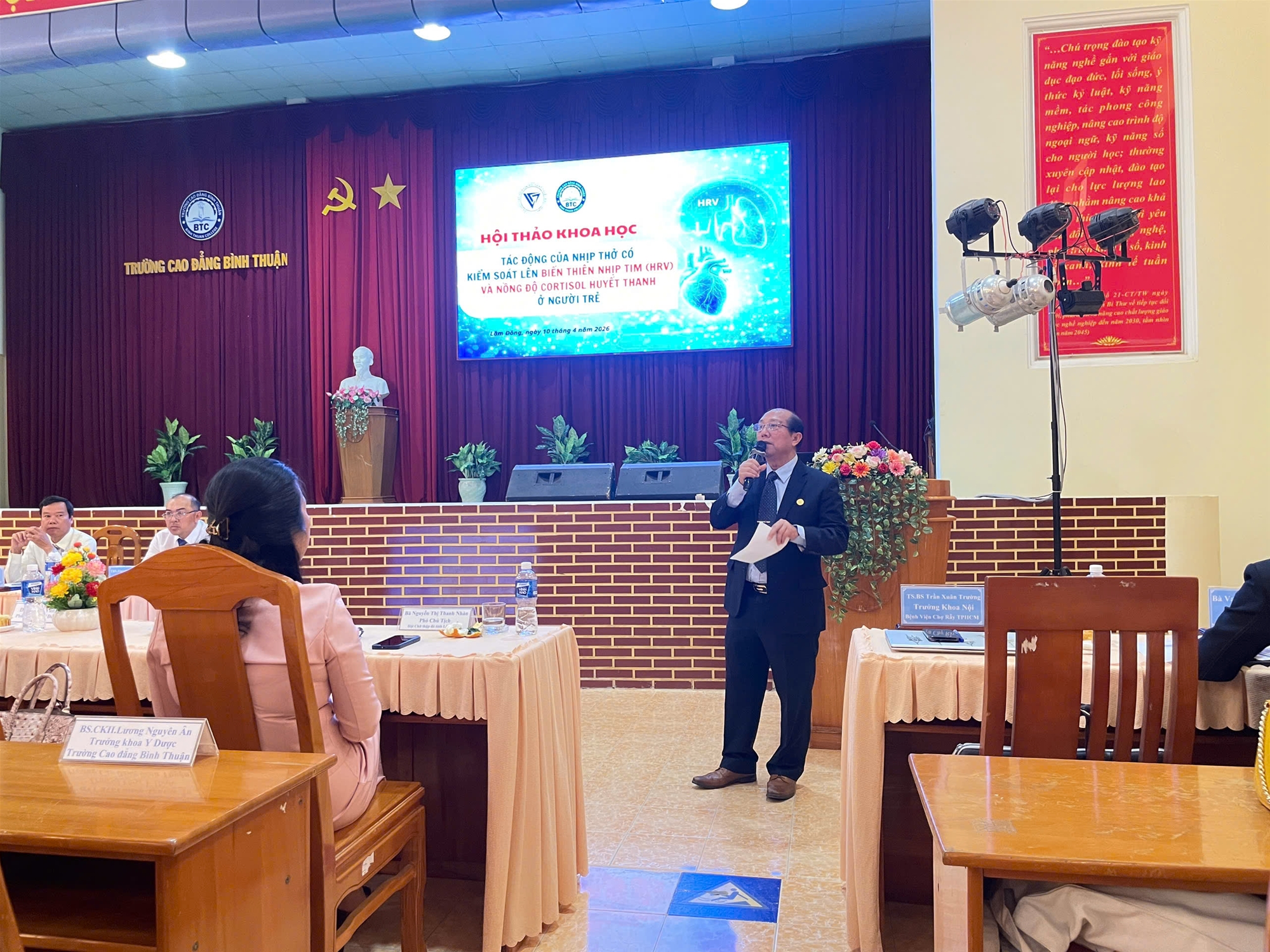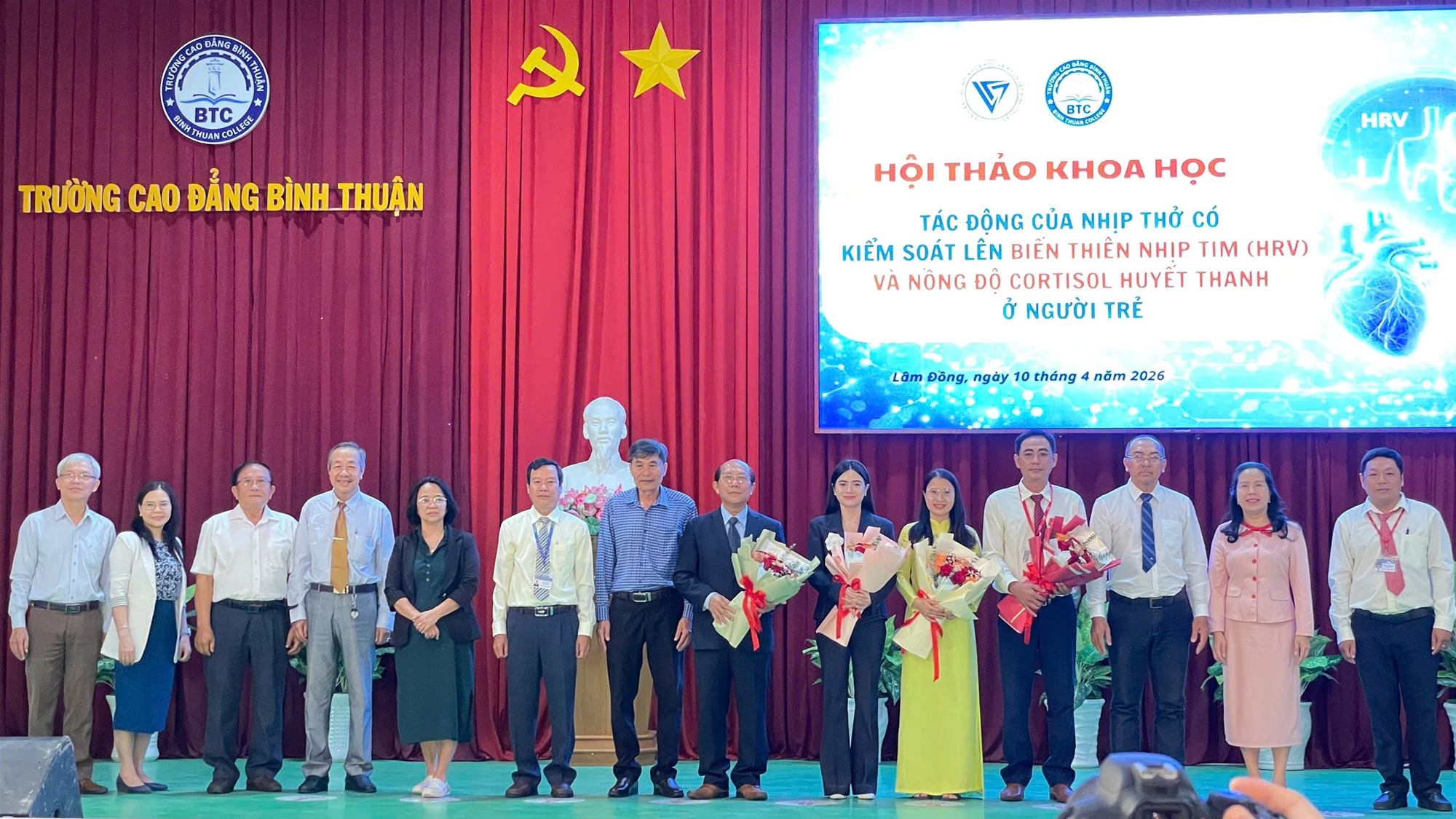 Sáng ngày 10/4/2026, Trường Cao đẳng Bình Thuận đã phối hợp với Liên hiệp các Hội Khoa học và Kỹ thuật tỉnh Lâm Đồng tổ chức Hội thảo khoa học với chủ đề: “Tác động của nhịp thở có kiểm soát lên biến thiên nhịp tim (HRV) và nồng độ Cortisol huyết thanh ở người trẻ”.