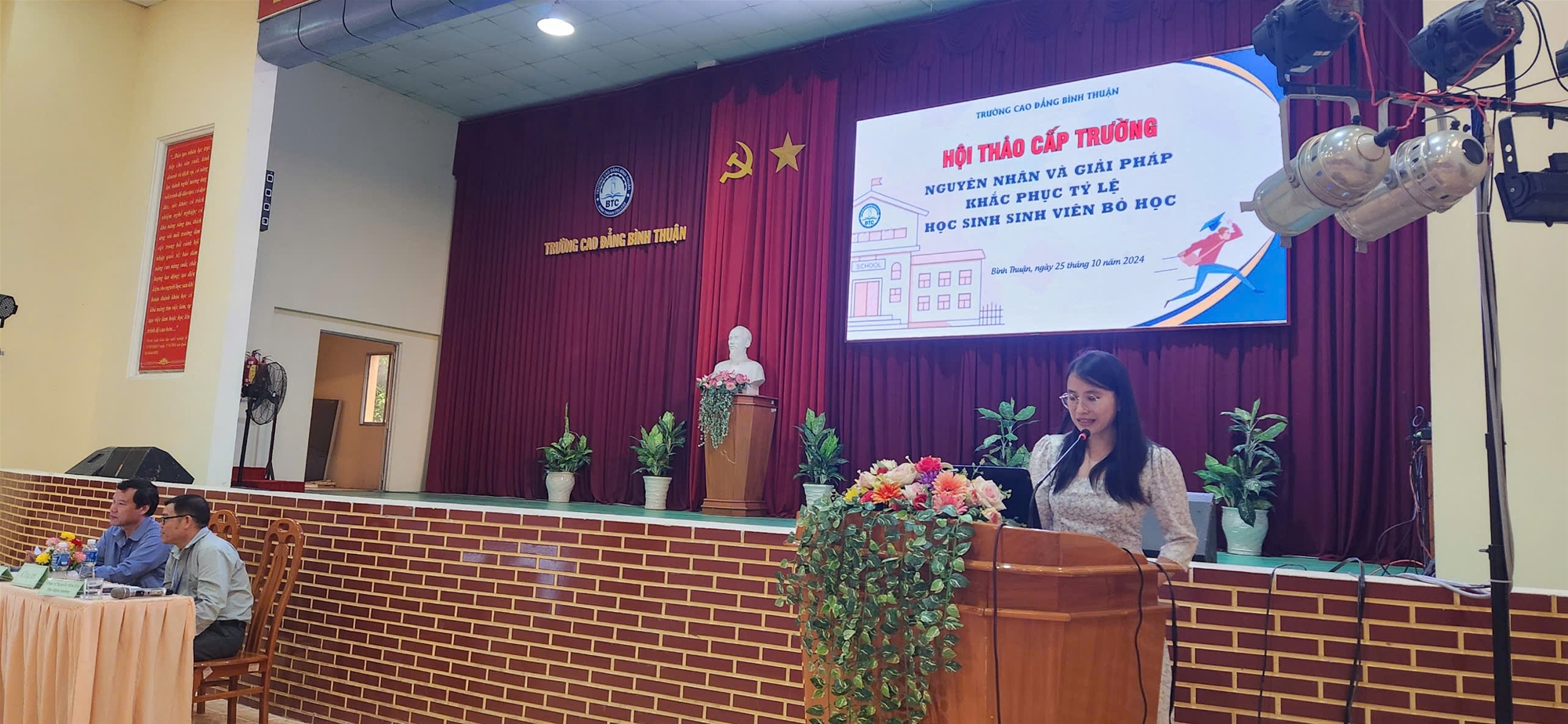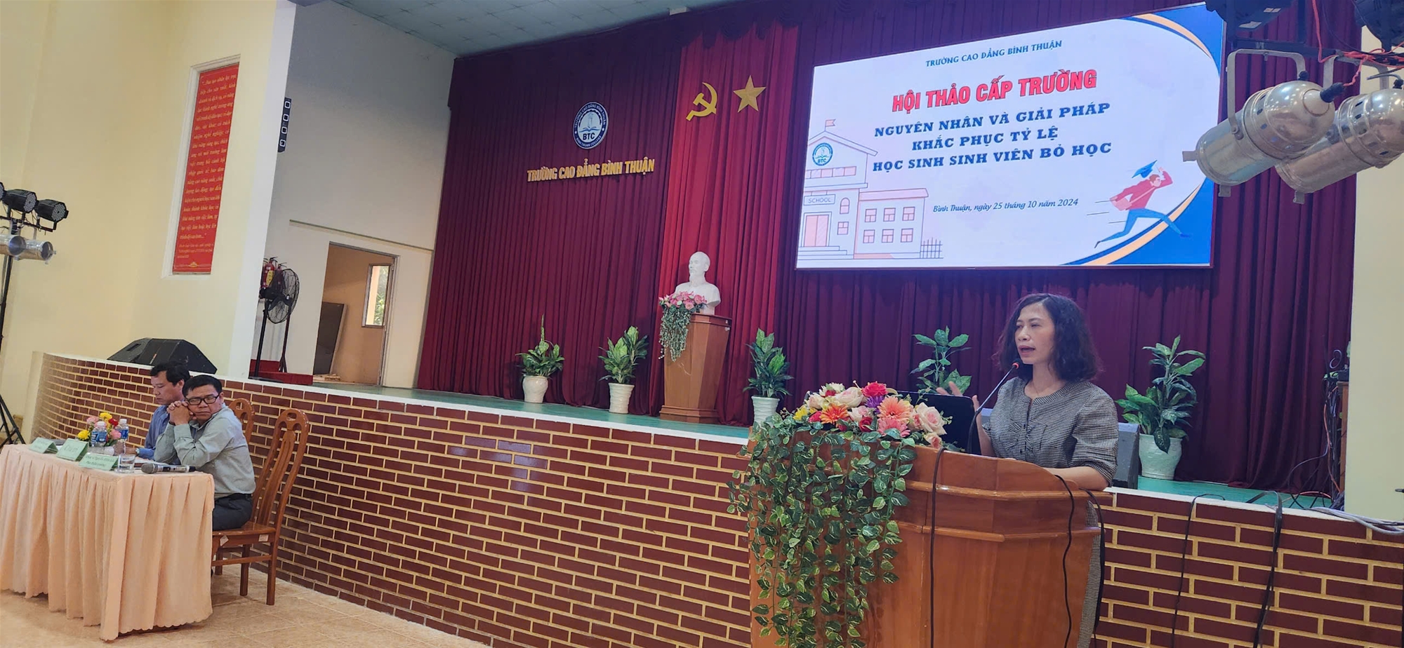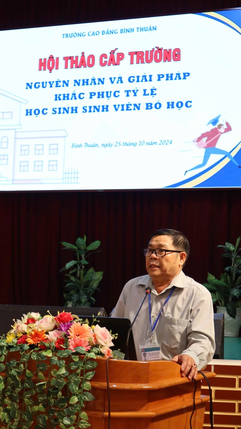 Chiều ngày 25/10/2024, tại Hội trường Cơ sở 1, Trường Cao đẳng Bình Thuận đã tổ chức Hội thảo “Nguyên nhân và giải pháp khắc phục tỷ lệ học sinh, sinh viên bỏ học”