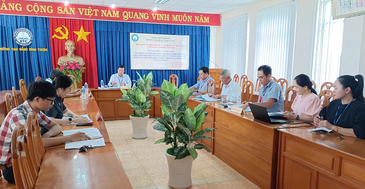 Đề tài được nghiệm thu là: “Tác động của phương pháp thở Haama Breath trong việc thay đổi một số chỉ số sinh lý và trạng thái tinh thần của sinh viên Khoa Y-Dược, Trường Cao đẳng Bình Thuận năm 2025”.